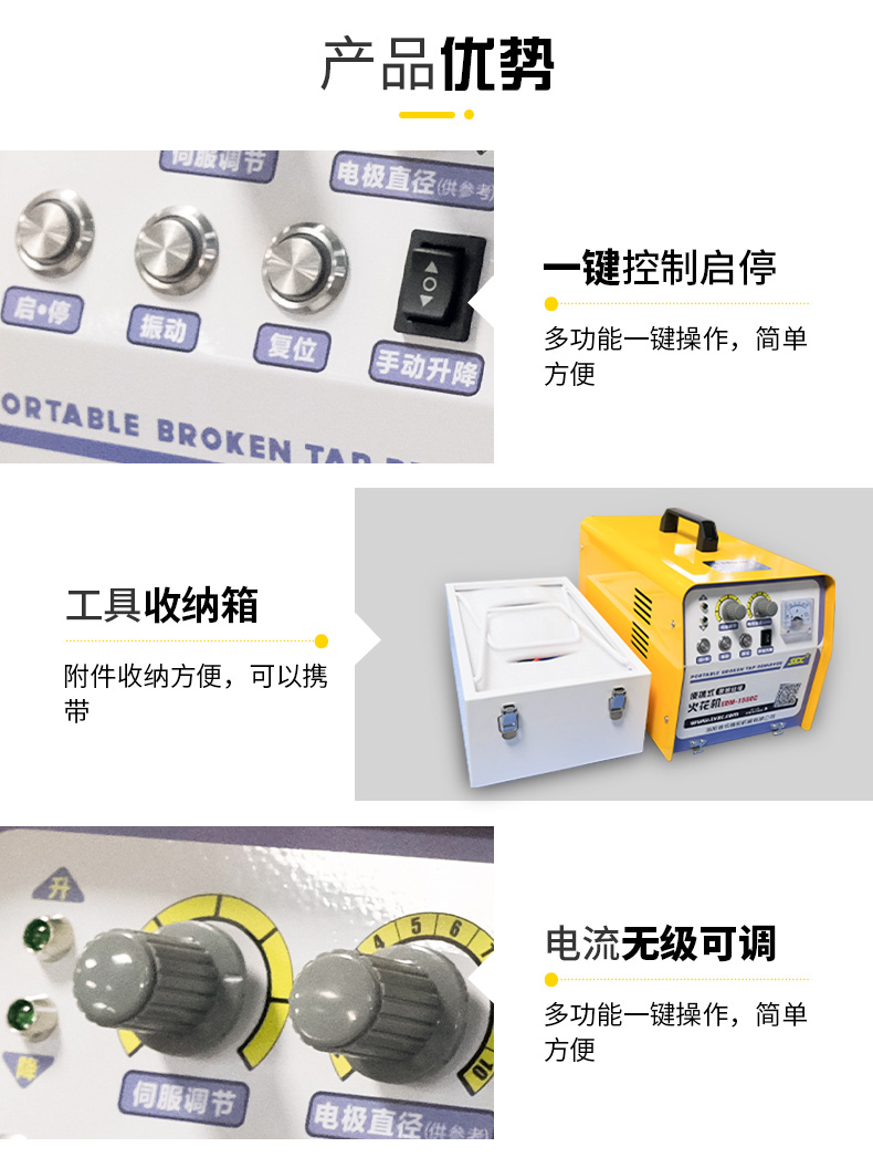 - 簡介:EDM-1500C電火花機便攜式取斷絲錐機 ,一鍵控制啟停,操作方便,工具收納箱可拆分,輸出電流無級可調,控制電路升級,放電加工連續效率高,無損去除斷在工件中的M2-M30絲錐、鉆頭等