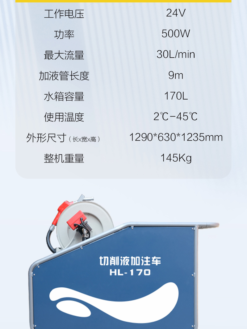機床切削液加注車HL-170切削液周邊設備 簡介:機床用切削液加注車HL-170 液位設定,自動跳槍, 9米膠管,卷盤自動收納·充電電池保護系統, 液位顯示直觀, 輕便推行,通過性強。 咨詢熱線:400-6700-379 留言給我們 產品詳細 上一篇:切削液混配器ZH-30 下一篇:機床水箱除渣車CLS-100